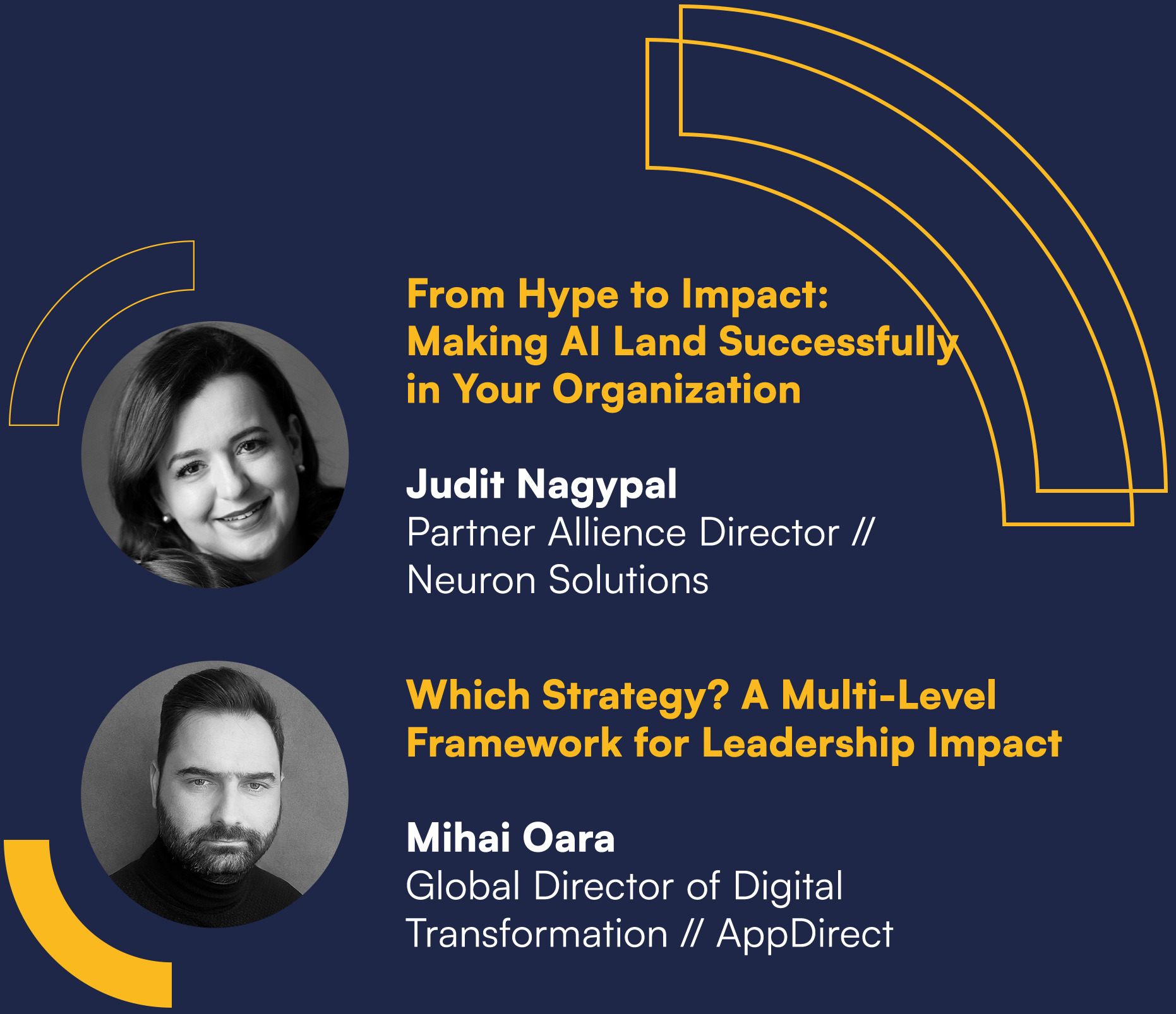 A global digital transformation and professional services leader with deep experience turning strategy into execution. Working at the intersection of business, technology, and leadership, he helps organizations align company direction, team performance, and leadership effectiveness. Mihai is passionate about developing leaders who operate intentionally — designing how they make decisions, grow, and create impact, not just what they deliver.